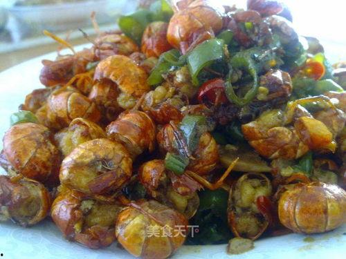 2. 复炸:将炸好的虾尾再次放入油中,复炸至外皮酥脆,捞出沥油。